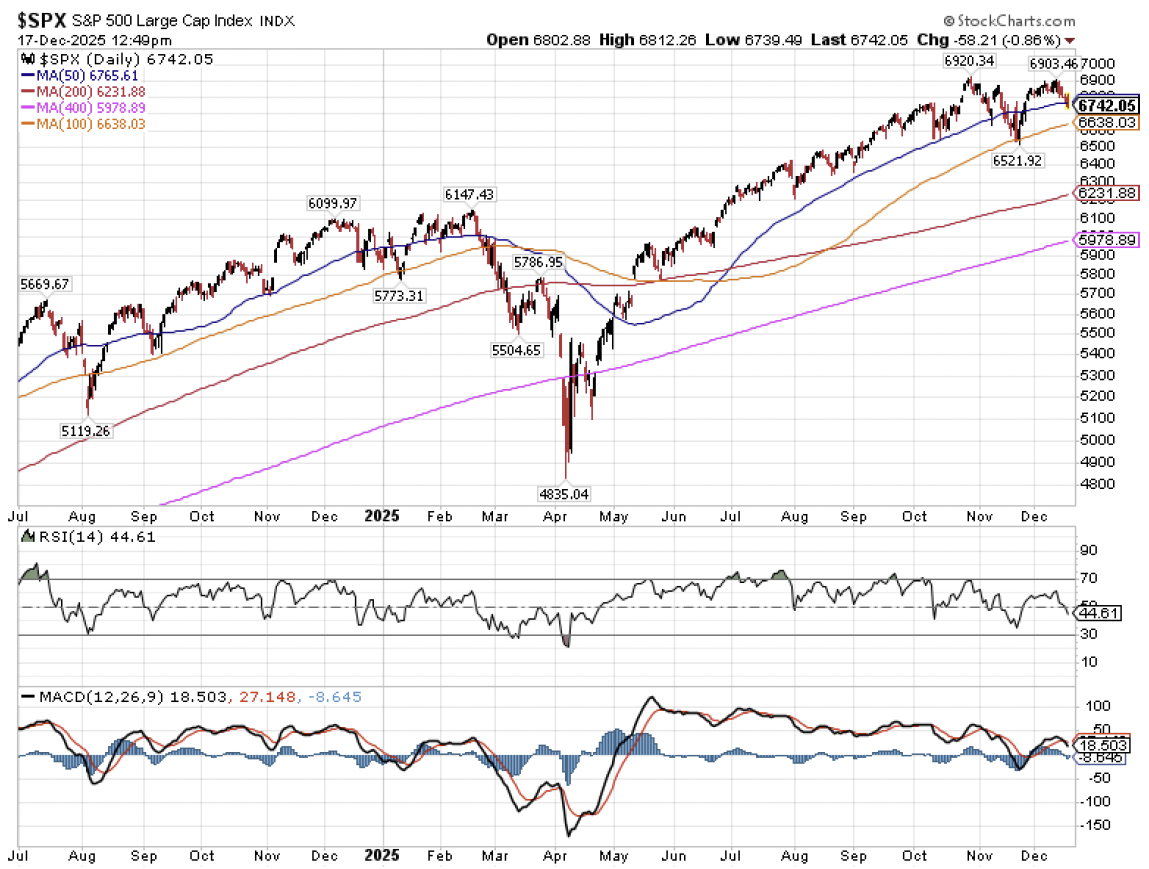 Stocks. The U.S. stock market continues to rise as we head toward 2026, but cracks are increasingly emerging. Let’s start with a look at the charts for context.